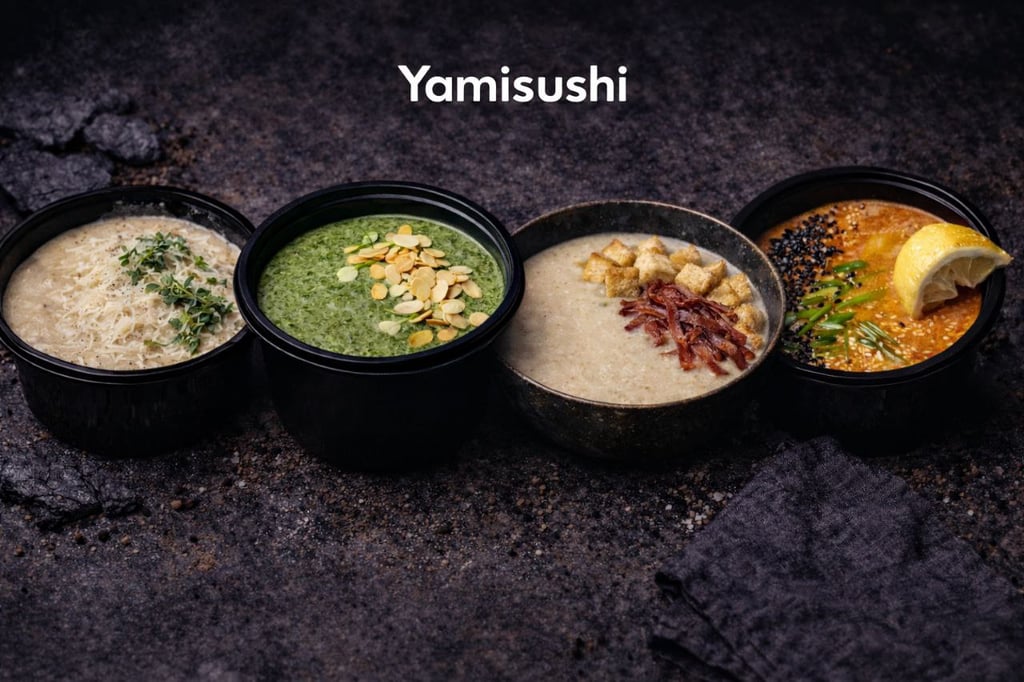 Склад: Black Yami рол-1шт. (грильований лосось, огірок, сир, кранч цибулі), Red Yami рол - 1шт.(лосось, манго, сир, ікра Тобіко), Футомак - 1шт., Макі з Хіяші - 1шт.