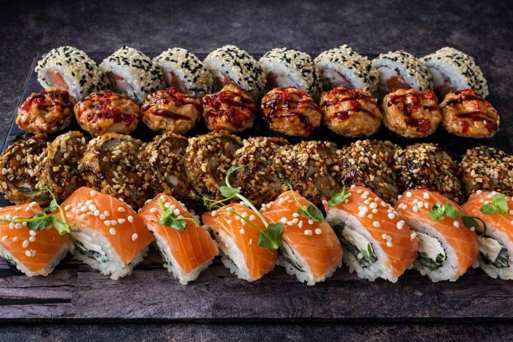 Склад: Темпура з лососем, Спайсі темпура з Крабом, Бургер Каліфорнія.